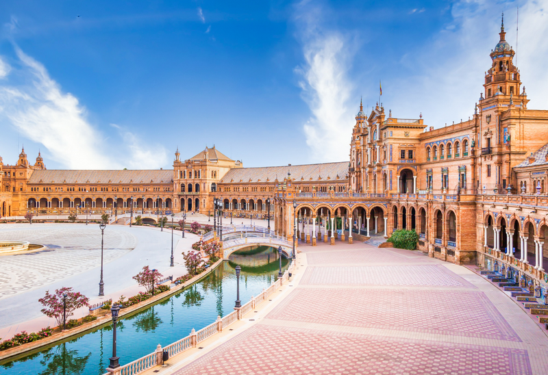 * Sevilla: O berço do flamenco, repleta de laranjeiras e paixão! Vamos visitar o majestoso Real Alcázar e sentir o ritmo contagiante desta cidade.
