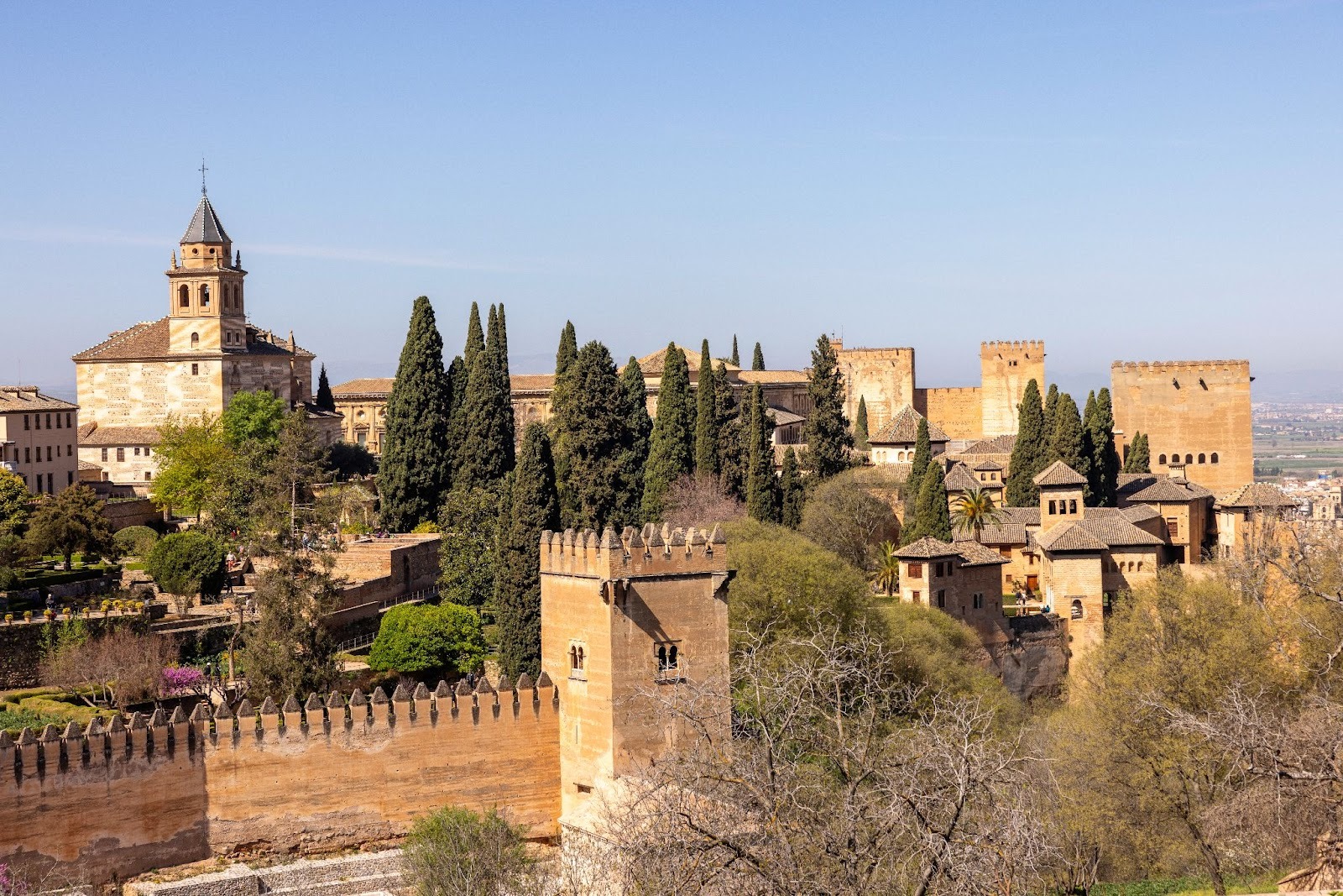 Em Granada, visitamos a lendária Alhambra. Mais do que um palácio, trata-se de uma obra-prima da arquitetura islâmica. Seus jardins, fontes e detalhes geométricos refletem a sofisticação do antigo reino nasrida. Do alto da fortaleza, a vista da Sierra Nevada cria um cenário quase cinematográfico, um dos momentos mais marcantes da viagem.